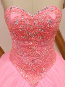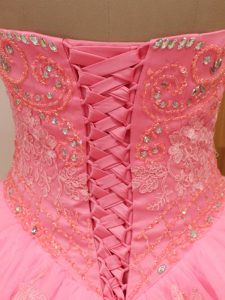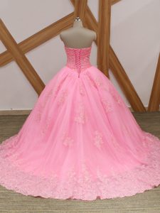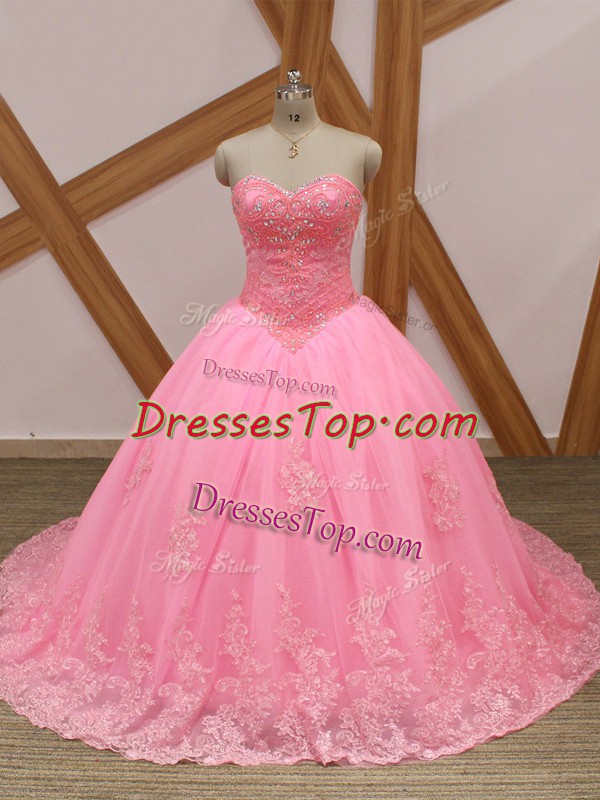 Chic Rose Pink Quinceanera Dresses Sweetheart Sleeveless Brush Train Lace Up