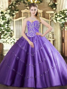 Chic Sleeveless Floor Length Beading and Appliques Lace Up Vestidos de Quinceanera with Lavender