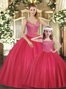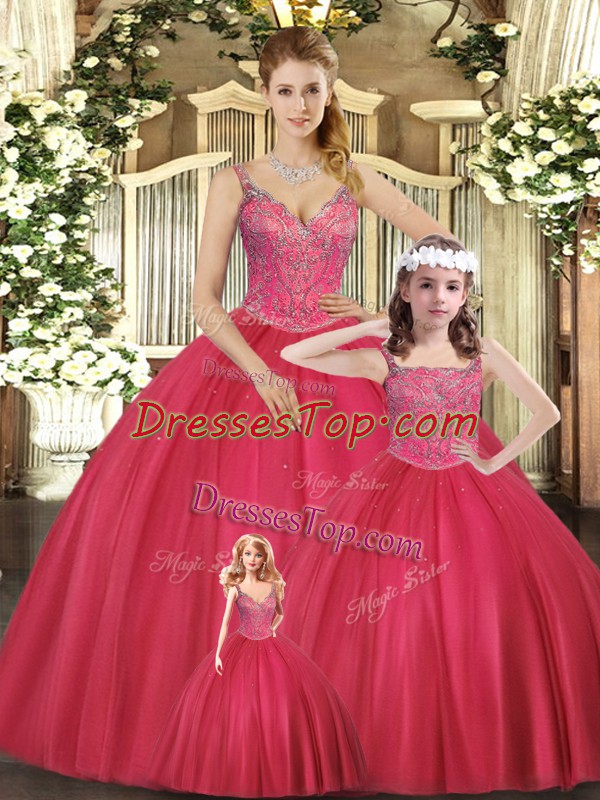 Chic Straps Sleeveless Tulle 15 Quinceanera Dress Beading Lace Up