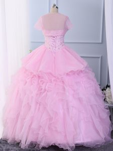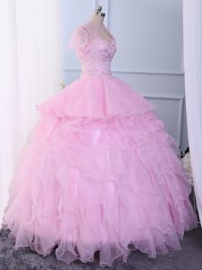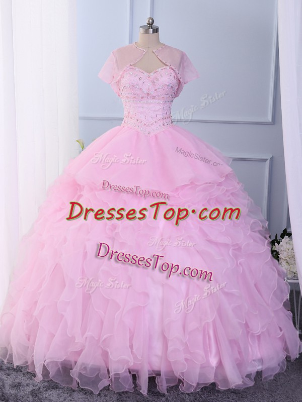 Chic Sweetheart Sleeveless Lace Up Quince Ball Gowns Pink Organza
