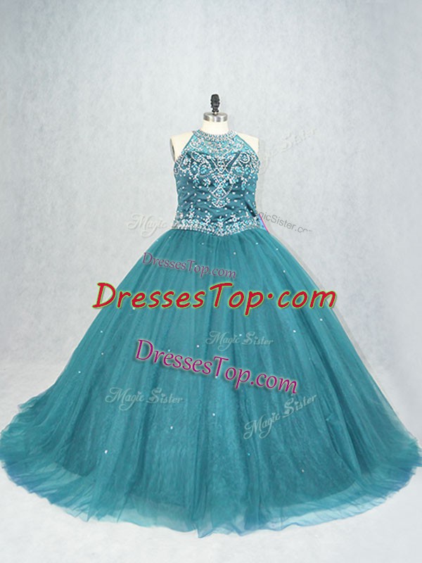 Chic Teal Sleeveless Beading Lace Up 15 Quinceanera Dress