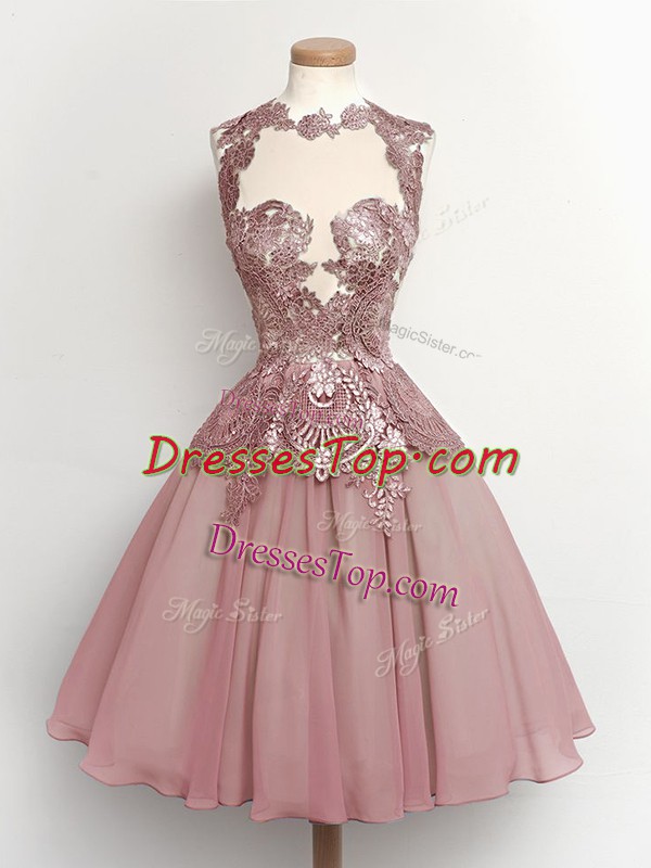 Chiffon High-neck Sleeveless Lace Up Lace Dama Dress for Quinceanera in Grey