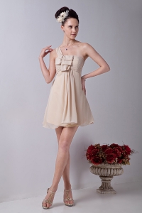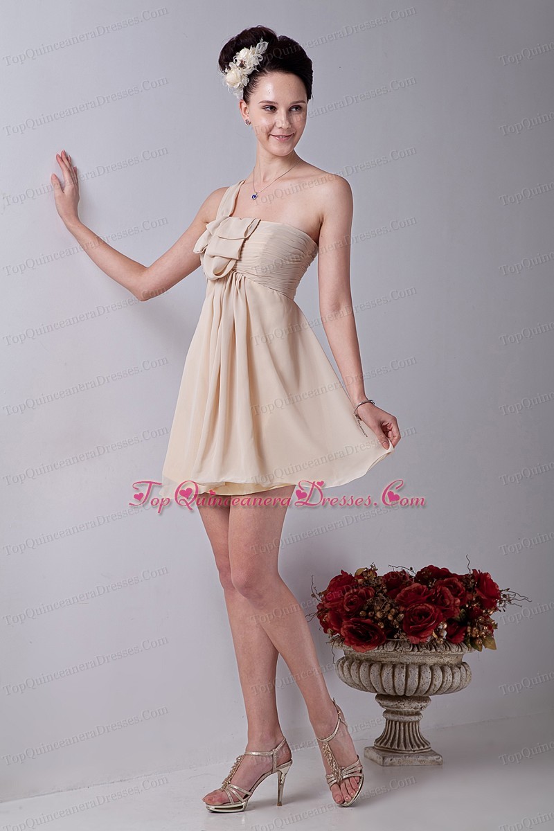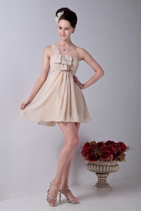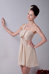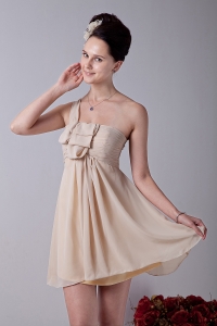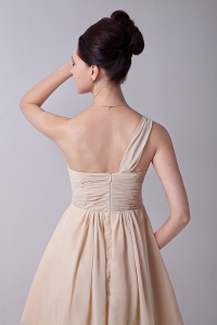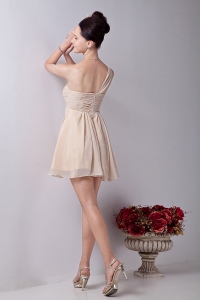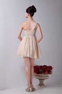 Chiffon Ruch Dama Dress Champagne One Shoulder Mini-length