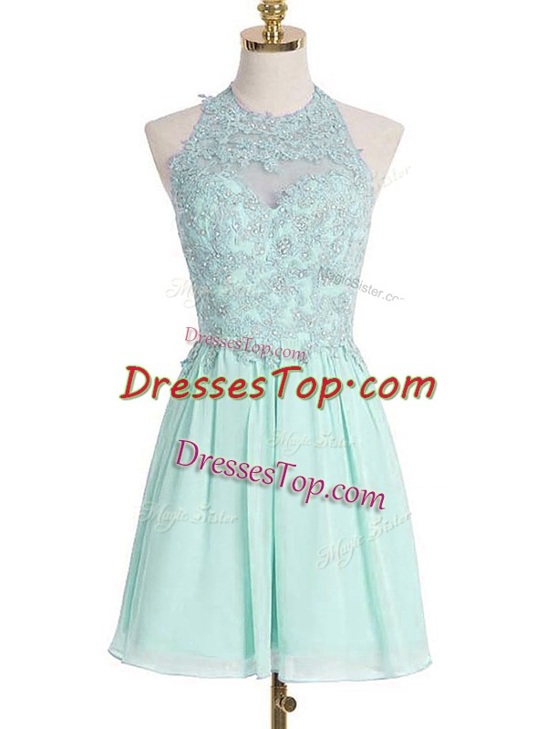 Chiffon Sleeveless Knee Length Dama Dress and Appliques