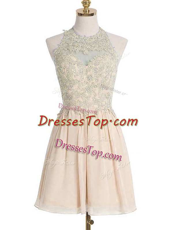 Chiffon Sleeveless Knee Length Quinceanera Court of Honor Dress and Appliques