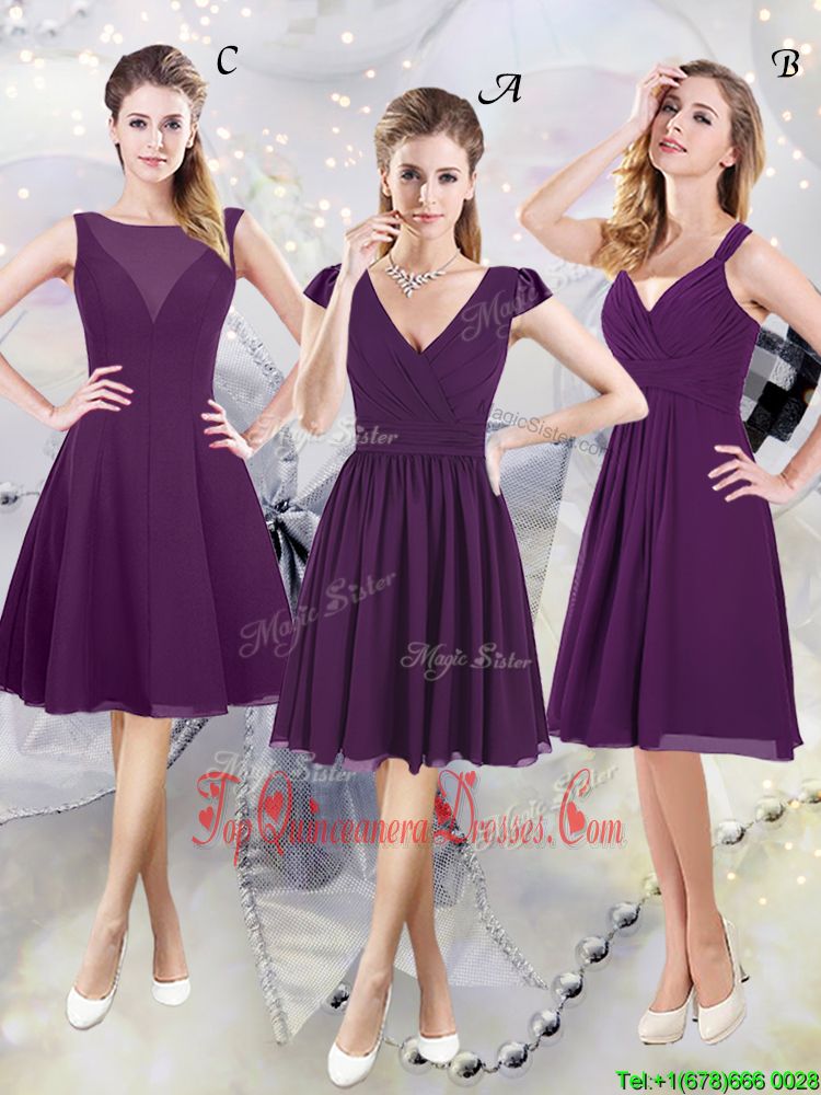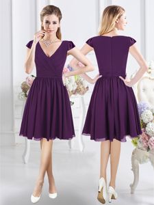 Chiffon V-neck Cap Sleeves Zipper Ruching Quinceanera Court Dresses in Purple