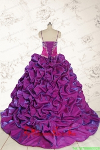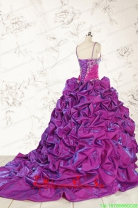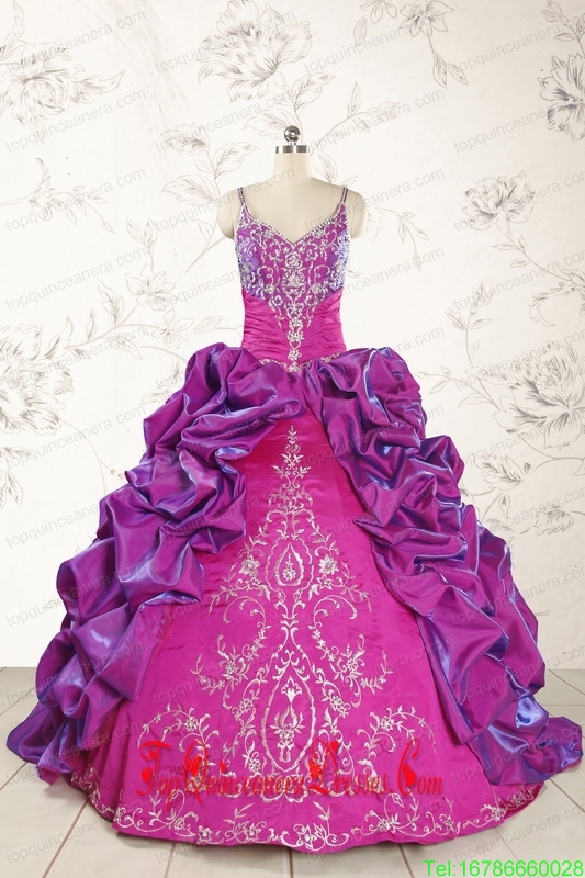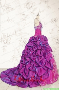 Classic Ball Gown Embroidery Court Train Quinceanera Dresses in Purple for 2015