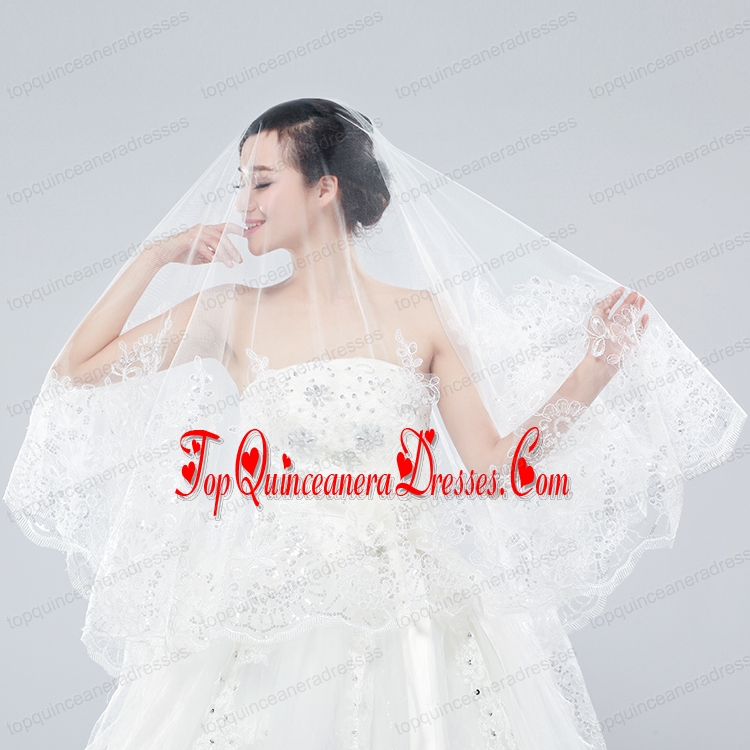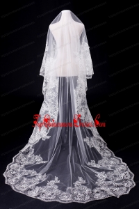Classic One-Tier Lace Appliques Edge Wedding Veil