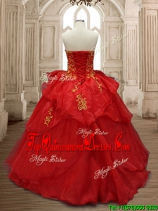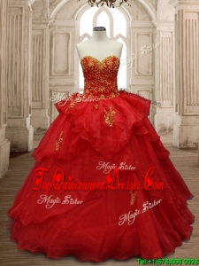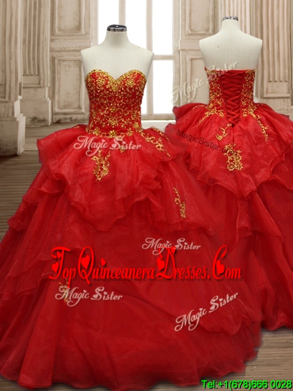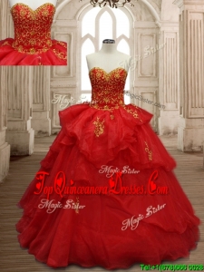 Classical Applique and Ruffled Layers Organza Quinceanera Dress in Red
