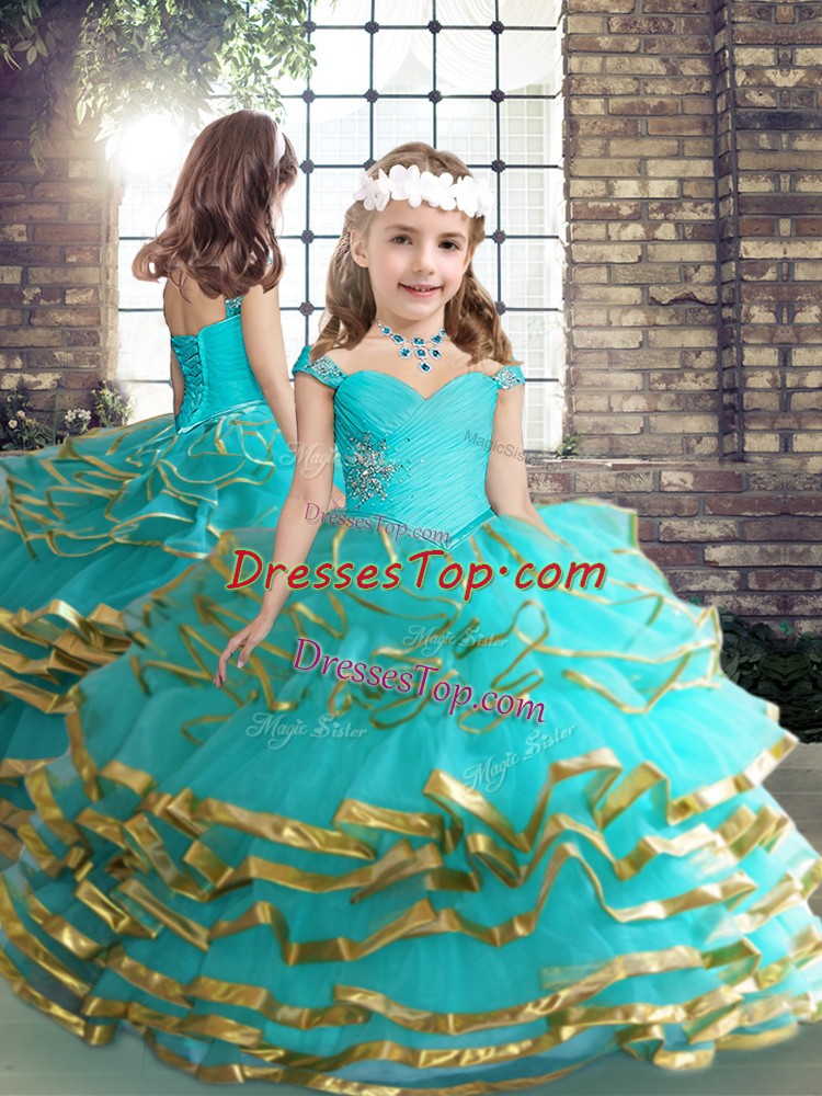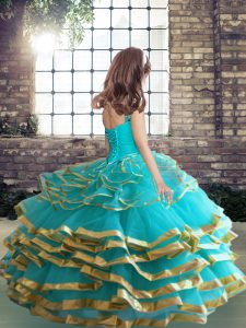 Classical Aqua Blue Sleeveless Beading and Ruching Floor Length Pageant Dress Wholesale