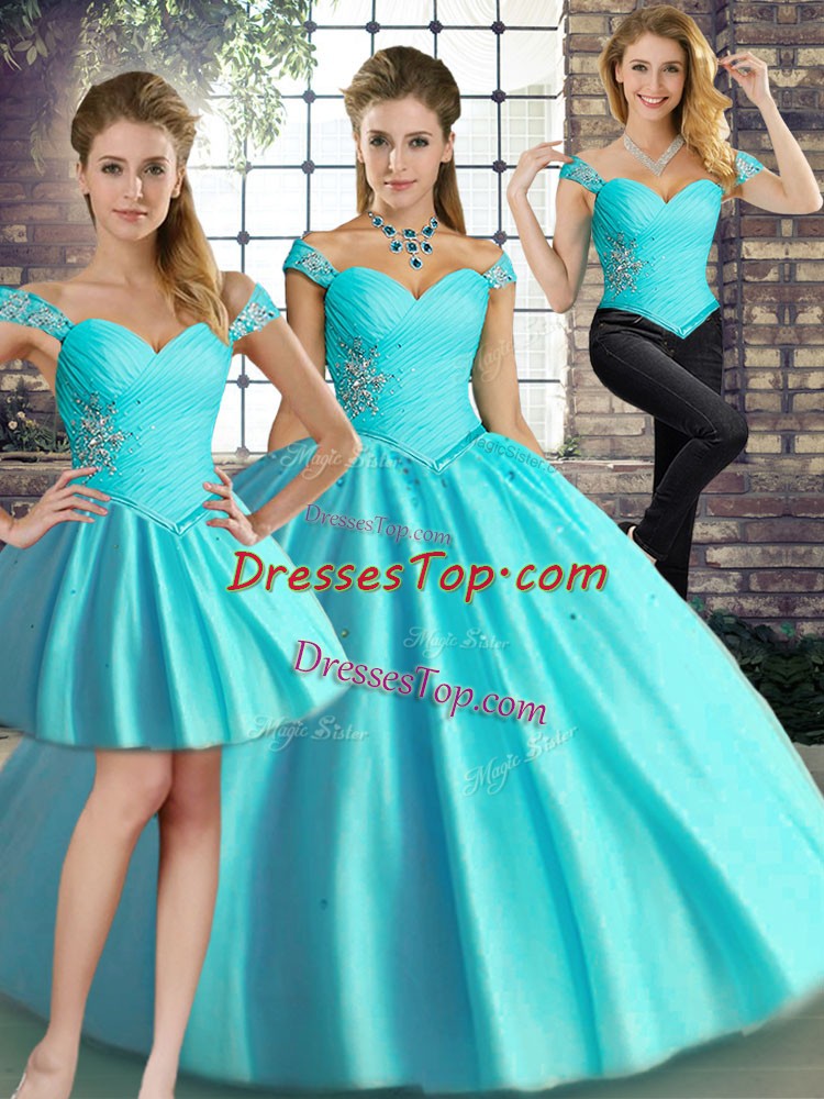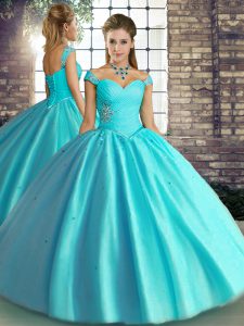 Classical Aqua Blue Sleeveless Tulle Lace Up Sweet 16 Quinceanera Dress for Military Ball and Sweet 16 and Quinceanera