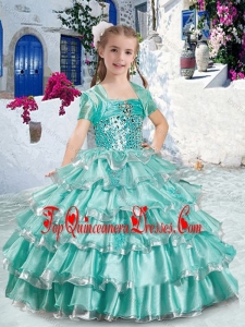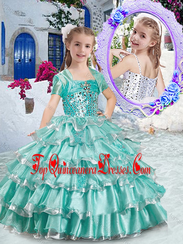 Classical Ball Gown Apple Green Little Girl Mini Quinceanera Dresses with Ruffled Layers