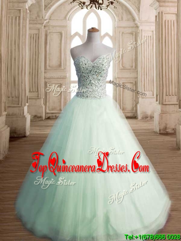 Classical Beaded Bodice Tulle Quinceanera Dress in Apple Green