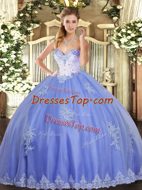 Classical Blue Lace Up Sweetheart Beading and Appliques 15 Quinceanera Dress Tulle Sleeveless