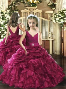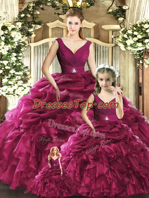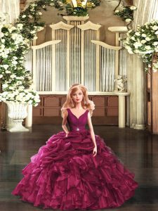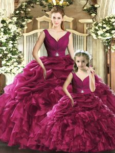 Classical Burgundy V-neck Neckline Ruffles 15th Birthday Dress Sleeveless Backless