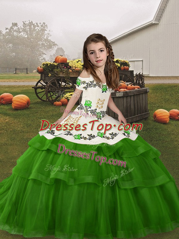 Classical Floor Length Ball Gowns Sleeveless Green High School Pageant Dress Lace Up