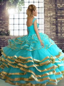 Classical Floor Length Lace Up Sweet 16 Dresses Green for Military Ball and Sweet 16 and Quinceanera with Beading and Ruffled Layers