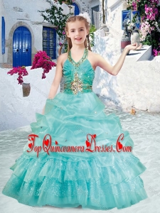 Classical Halter Top Little Girl Mini Quinceanera Dresses with Beading and Bubles