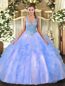 Classical Light Blue Sleeveless Tulle Lace Up 15th Birthday Dress for Military Ball and Sweet 16 and Quinceanera