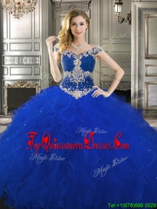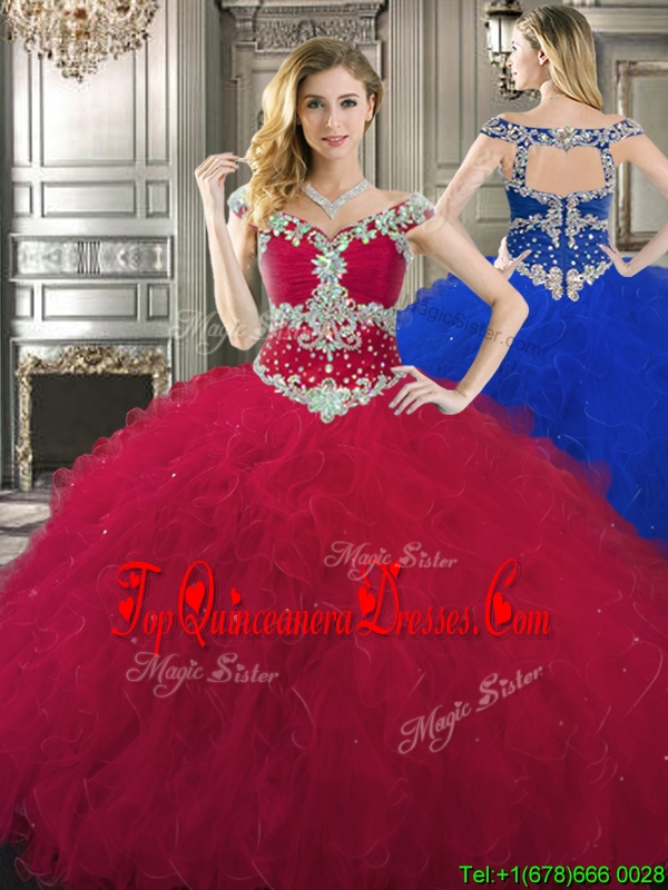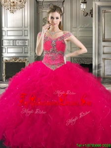 Classical Off the Shoulder Cap Sleeves Quinceanera Dress with Beading and Ruffles