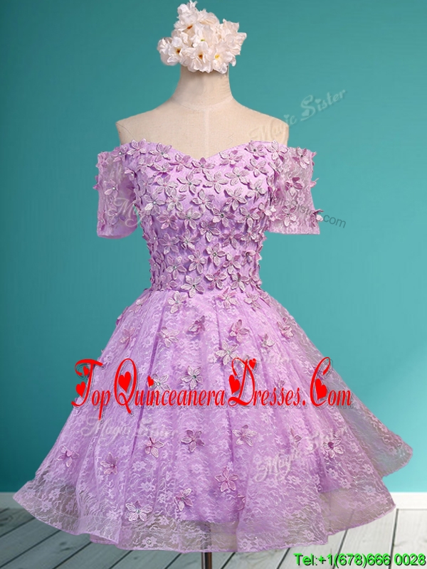 Classical Off the Shoulder Lilac Damas Dress with Appliques and Beading