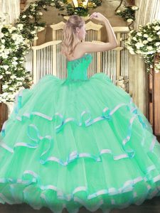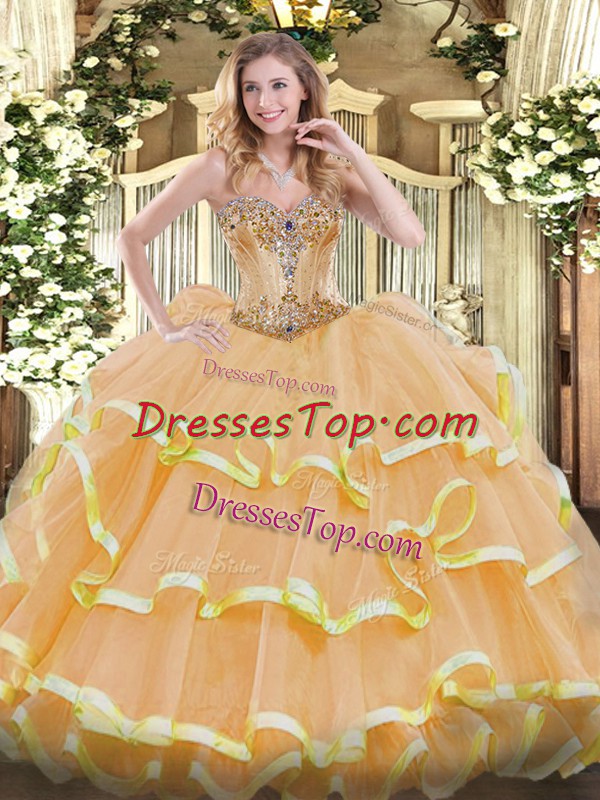 Classical Organza Sweetheart Sleeveless Lace Up Beading and Ruffles Quinceanera Gowns in Gold