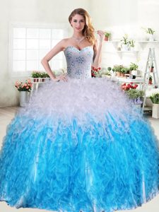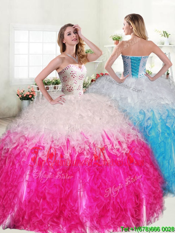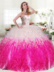 Classical Organza Sweetheart Sleeveless Lace Up Beading and Ruffles Sweet 16 Dress in Pink And White