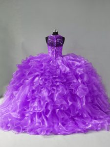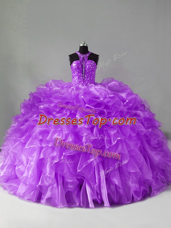 Classical Purple Halter Top Neckline Beading and Ruffles Vestidos de Quinceanera Sleeveless Zipper