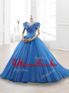 Classical Real Photo Show Blue Off the Shoulder Long Quinceanera Dresses with Appliques