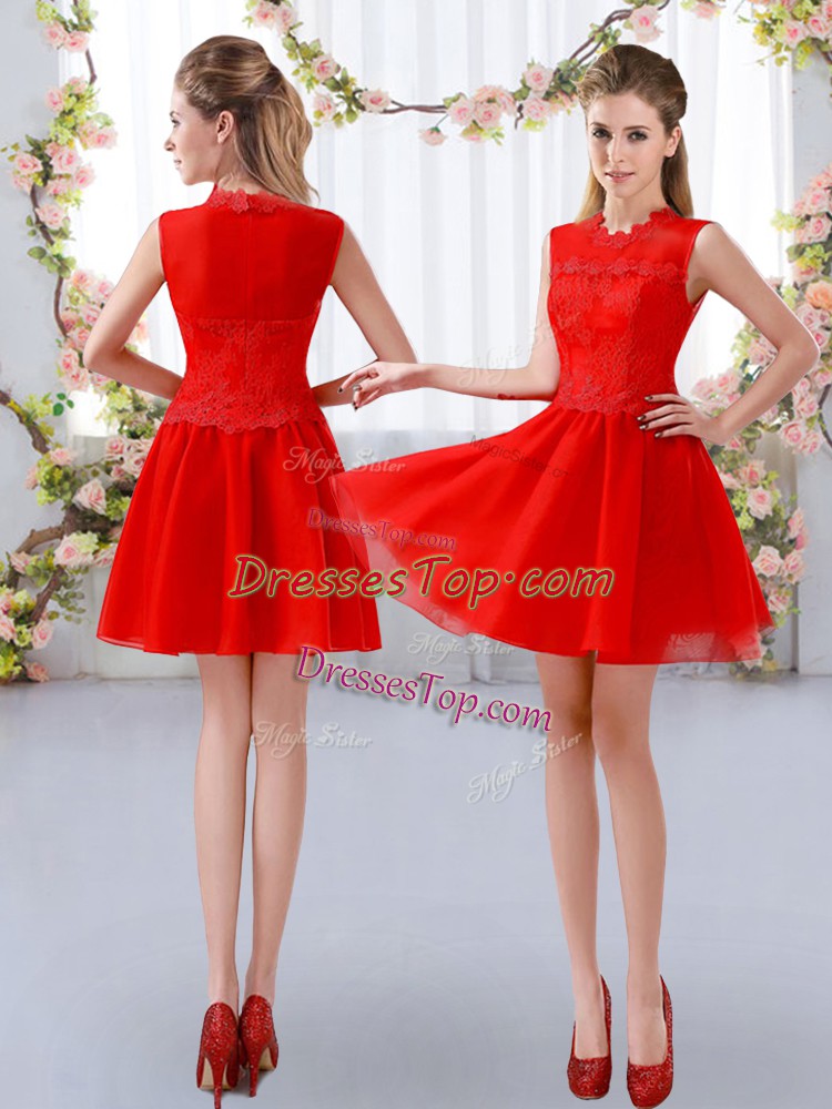 Classical Red High-neck Neckline Lace Dama Dress for Quinceanera Sleeveless Zipper