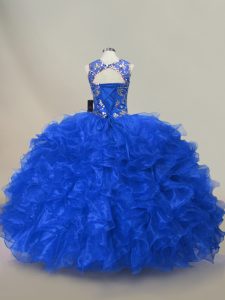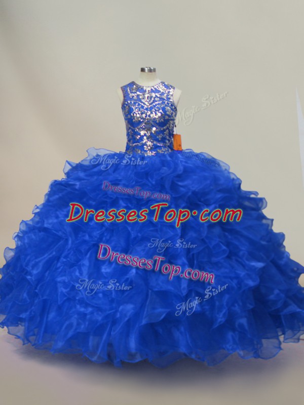 Classical Royal Blue Organza Lace Up Sweet 16 Dresses Sleeveless Floor Length Ruffles and Sequins