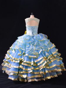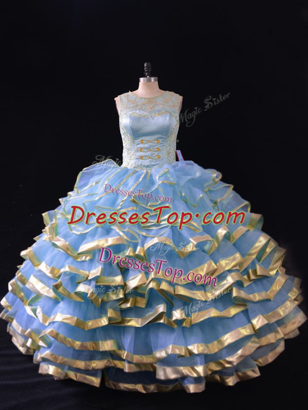 Classical Ruffled Layers Quinceanera Dresses Blue Lace Up Sleeveless Floor Length