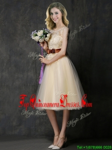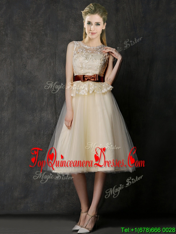 Classical See Through Scoop Damas Dress with Bowknot and Lace