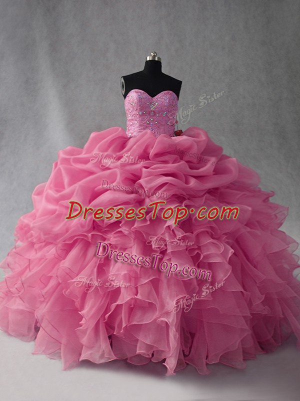Classical Sleeveless Beading and Ruffles and Pick Ups Lace Up 15th Birthday Dress