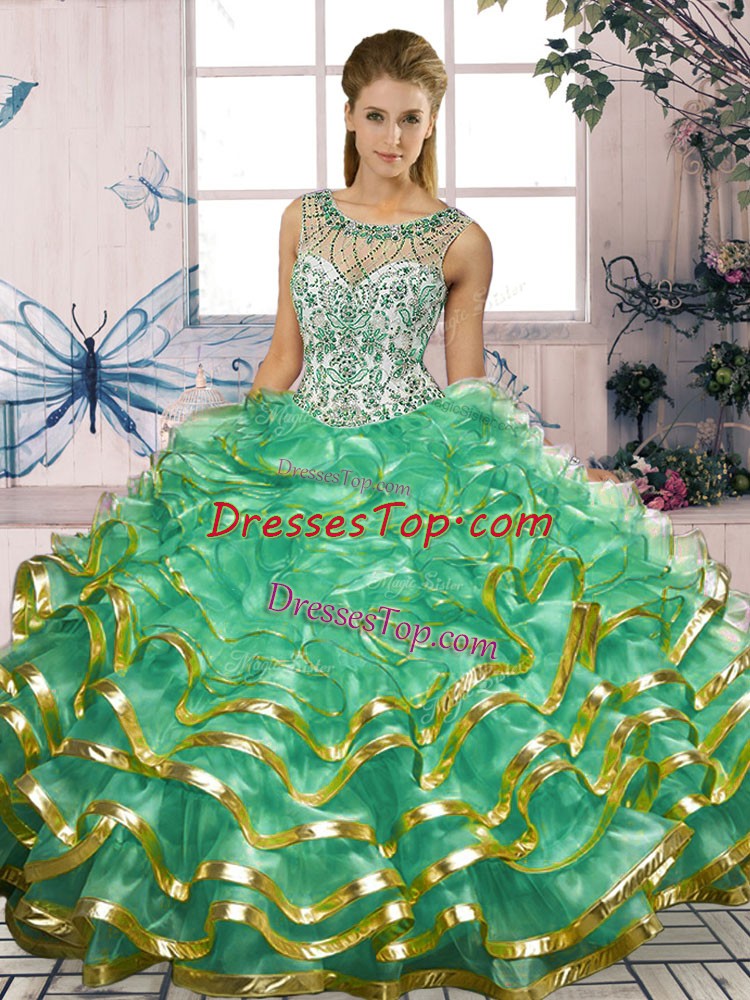 Classical Sleeveless Lace Up Floor Length Beading and Ruffles Quinceanera Gown