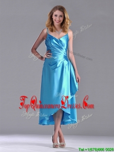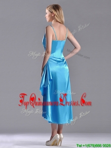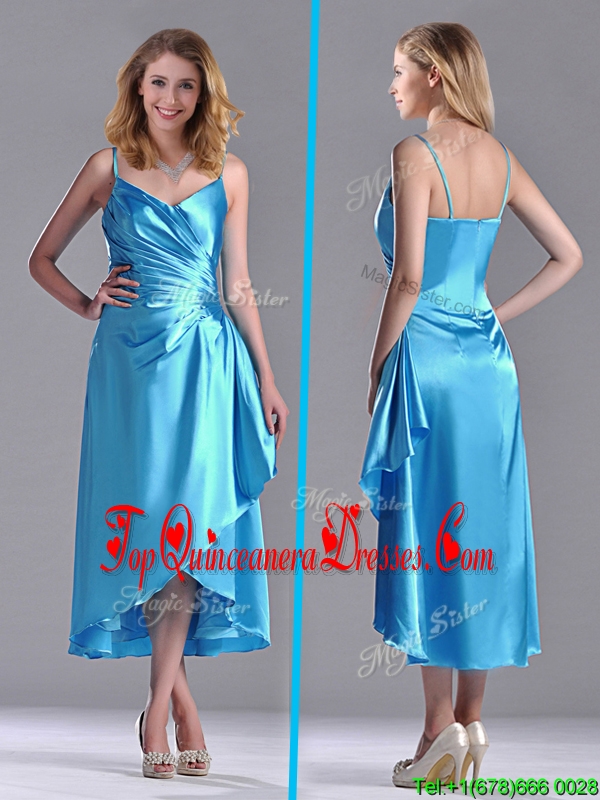 Classical Spaghetti Straps Baby Blue Dama Dress in Tea Length
