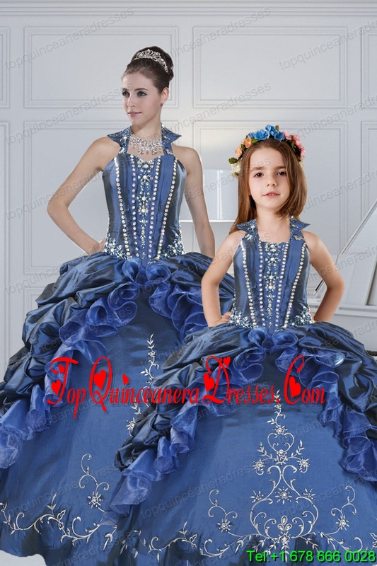 Classical Sweetheart Navy Blue Princesita Dresses with Embroidery