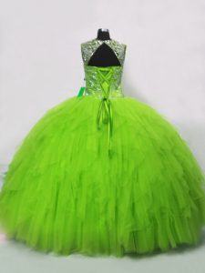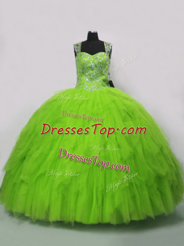 Classical Tulle Lace Up Straps Sleeveless Floor Length Sweet 16 Dresses Beading and Ruffles