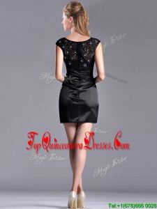 Classical V Neck Satin and Lace Dama Dress with Cap Sleeves