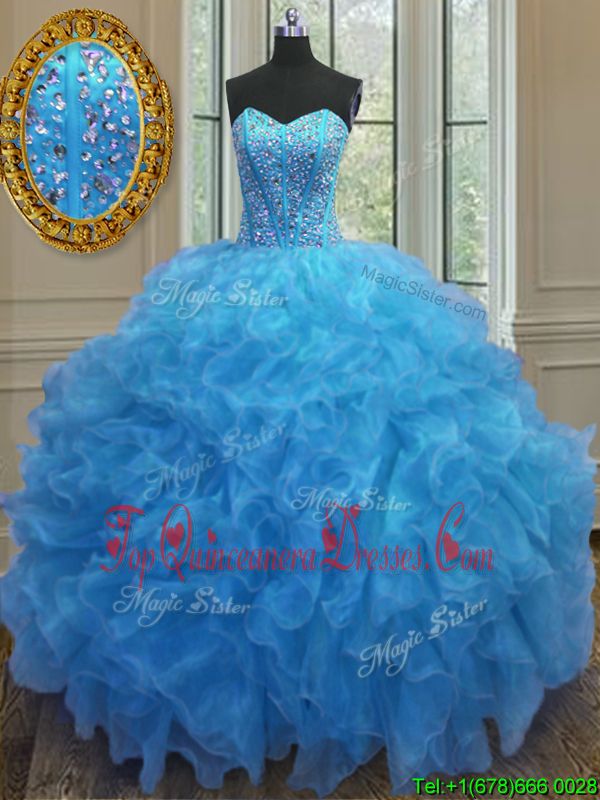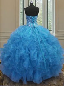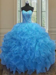Clearance Baby Blue Sleeveless Organza Side Zipper Quinceanera Gown for Military Ball and Sweet 16 and Quinceanera
