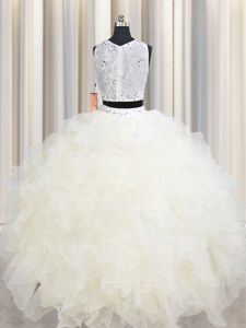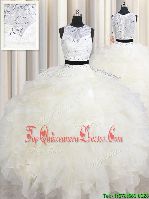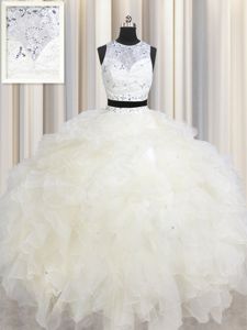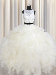 Clearance Champagne Scoop Lace Up Beading and Ruffles Sweet 16 Quinceanera Dress Sleeveless