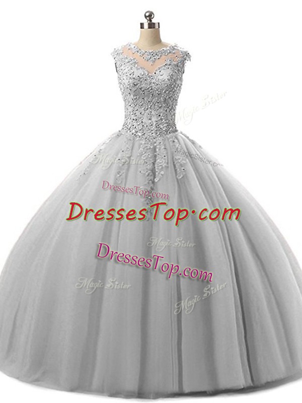Clearance Floor Length Ball Gowns Sleeveless Grey Quince Ball Gowns Lace Up
