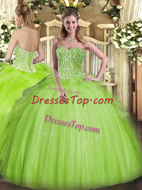 Clearance Floor Length Ball Gowns Sleeveless Yellow Green Vestidos de Quinceanera Lace Up