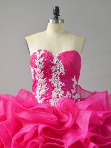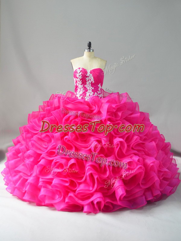 Clearance Hot Pink 15th Birthday Dress Organza Sleeveless Appliques and Ruffles