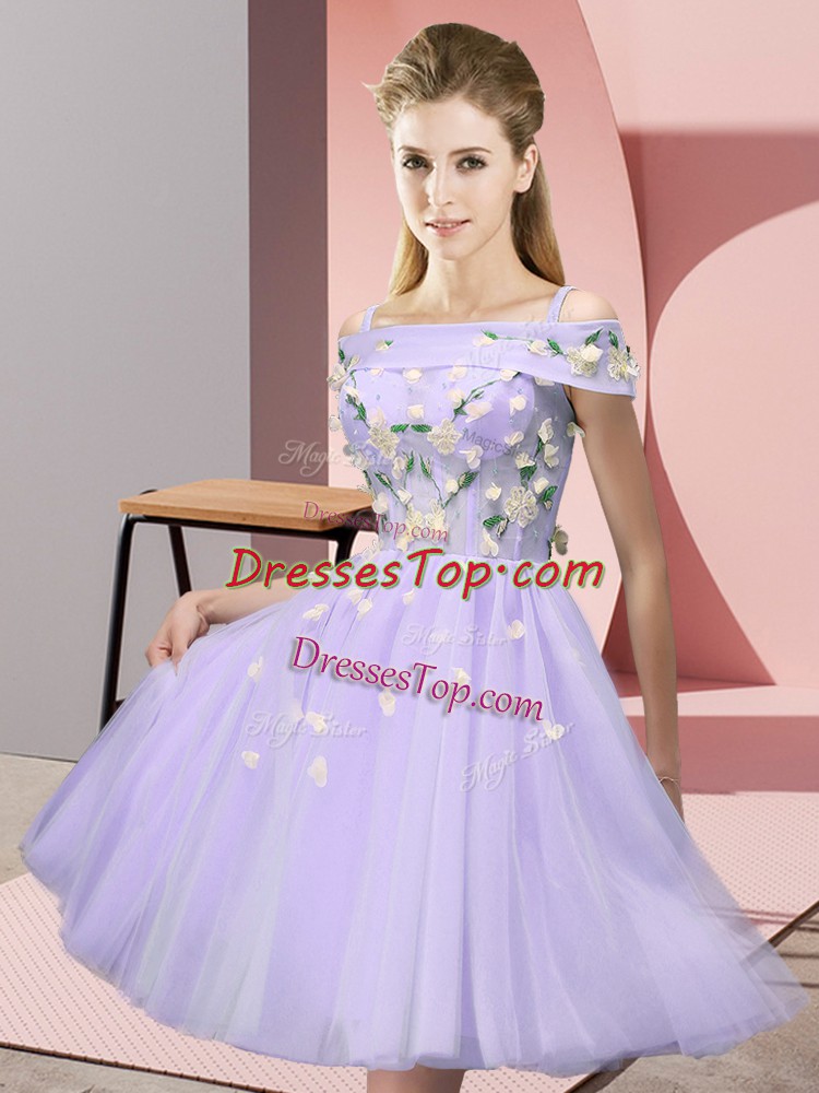 Clearance Lavender Off The Shoulder Neckline Appliques Damas Dress Short Sleeves Lace Up
