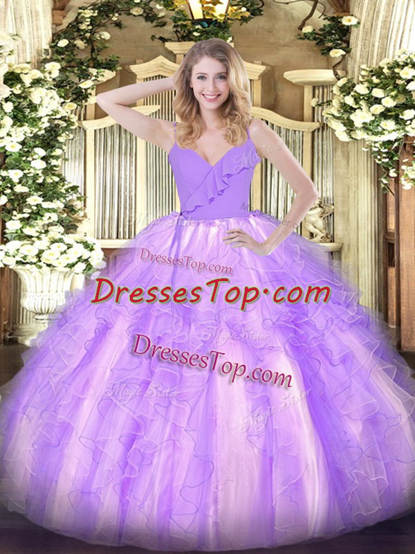 Clearance Lavender Organza Zipper Sweet 16 Quinceanera Dress Sleeveless Floor Length Ruffles