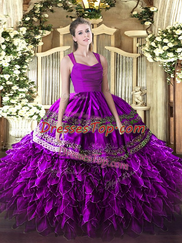 Clearance Purple Sleeveless Organza Zipper Sweet 16 Dresses