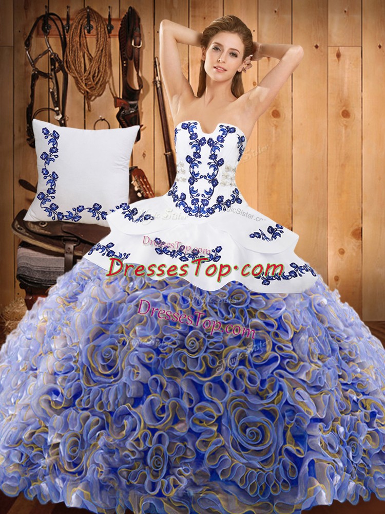 Clearance Satin and Fabric With Rolling Flowers Sleeveless With Train Vestidos de Quinceanera Sweep Train and Embroidery