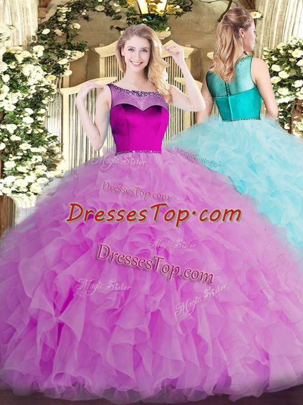 Clearance Scoop Sleeveless Ball Gown Prom Dress Floor Length Beading and Ruffles Lilac Organza