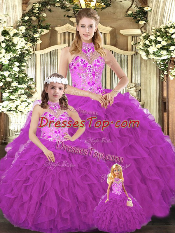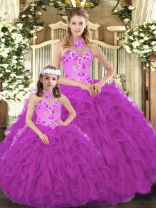 Clearance Sleeveless Embroidery and Ruffles Lace Up Ball Gown Prom Dress